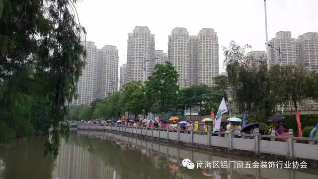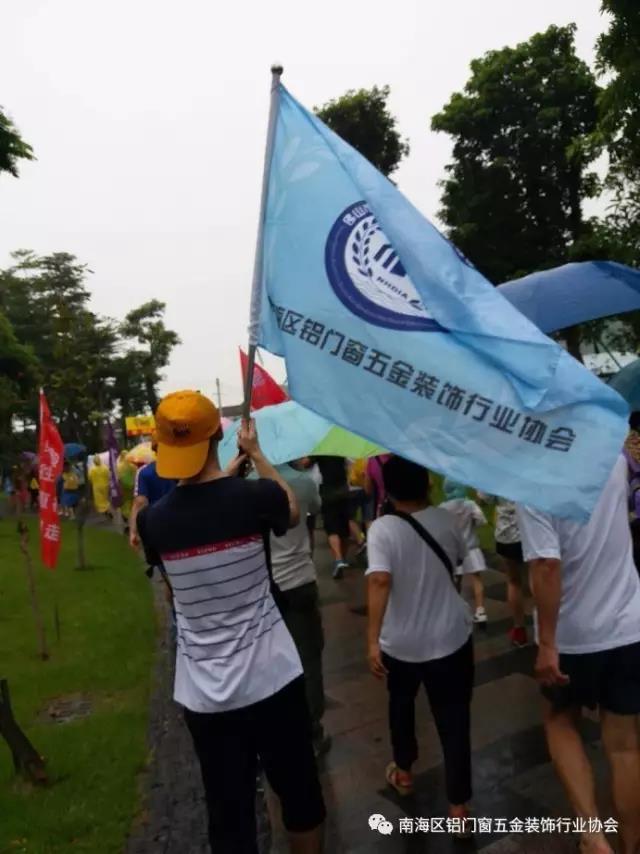 铝门窗五金网讯: 6月18日上午,南海区大沥镇在九龙公园举行了一场名为“大沥徒步·创客之旅”的5公里徒步活动,活动倡导环保理念,在以毅行的方式身体力行的支持环保事业。南海区铝门窗五金装饰行业协会作为协办单位,组织近20个会员代表组成协会方阵,积极参与到本次活动中。