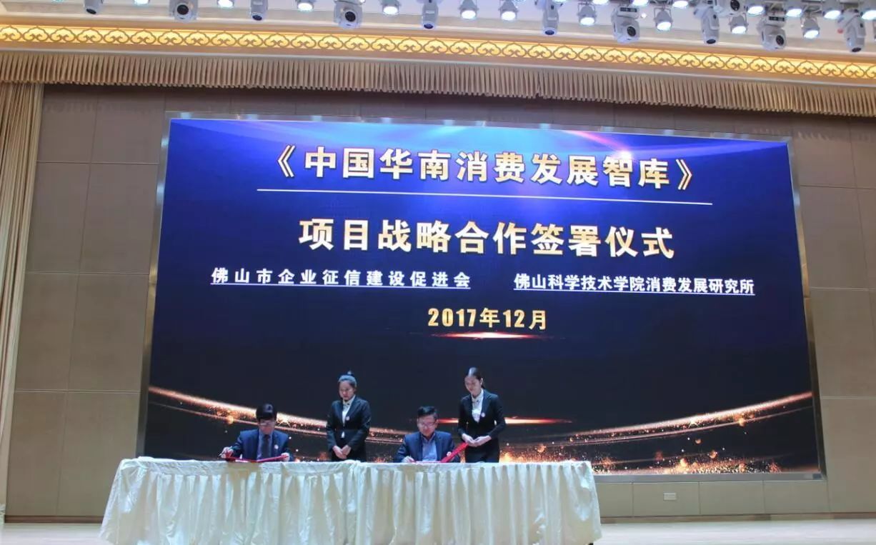 中国华南消费发展智库与佛山市企业征信建设促进会达成战略合作关系,有望构建佛山诚信-消费-政策三维论。