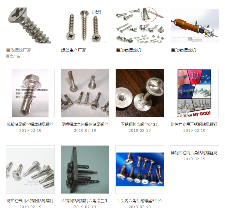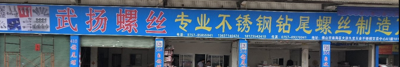 佛山市武扬五金制品有限公司主要从事五金产品的研究和开发,公司引进全套先进的生产设备,拥有完善的检验仪器,可按客户标准生产出精密及特殊的零件,专业生产钻尾自攻螺丝,不锈钢钻尾自攻螺丝,钻尾螺丝,自攻螺丝,不锈钢螺丝,内六角螺丝,特殊螺丝,马车螺丝,铆钉,机械牙螺丝,木螺丝,干壁钉,墙用螺丝,螺母等。