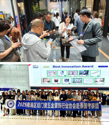 为助推行业高质量发展,开拓国际化视野,2025年4月25日至29日,南海区铝门窗五金装饰行业协会组织会员企业代表赴泰国开展为期5天的商务考察。通过参观当地建材市场、与泰国深圳总商会代表开展洽谈对接、参观泰国东盟建筑及技术博览会等形式,深入了解东南亚市场情况,探索合作新机遇。